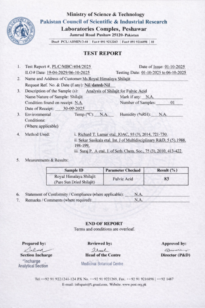 High fulvic acid is the true marker of authentic shilajit. Our batches are independently tested to confirm exceptional potency.