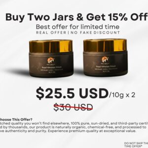 Unmatched quality you won’t find elsewhere, 100% pure, sun-dried, and third-party certified. Trusted by thousands, our product is naturally organic, chemical-free, and processed to preserve authenticity and purity. Experience premium quality at exceptional value.